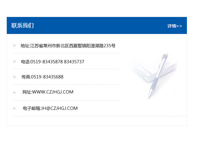 地址:常州市新北區友邦商務大廈1幢16、17層  電話:0519-85101652  傳真:0519-85112595  郵編:213022  網址:www_cz-jiayue_cn.99910086.com  郵箱:xiajifengaa@163.com